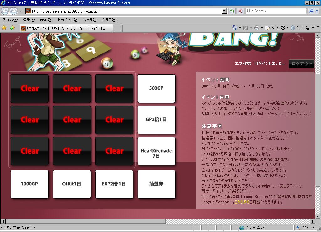イベントビンゴ全部あけたんですが・・・
